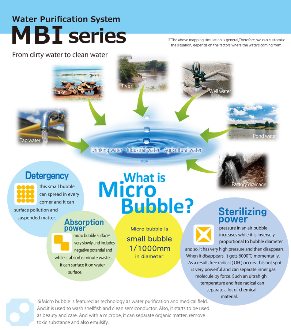Micro bubble is small bubble 1/1000mm in diameter.